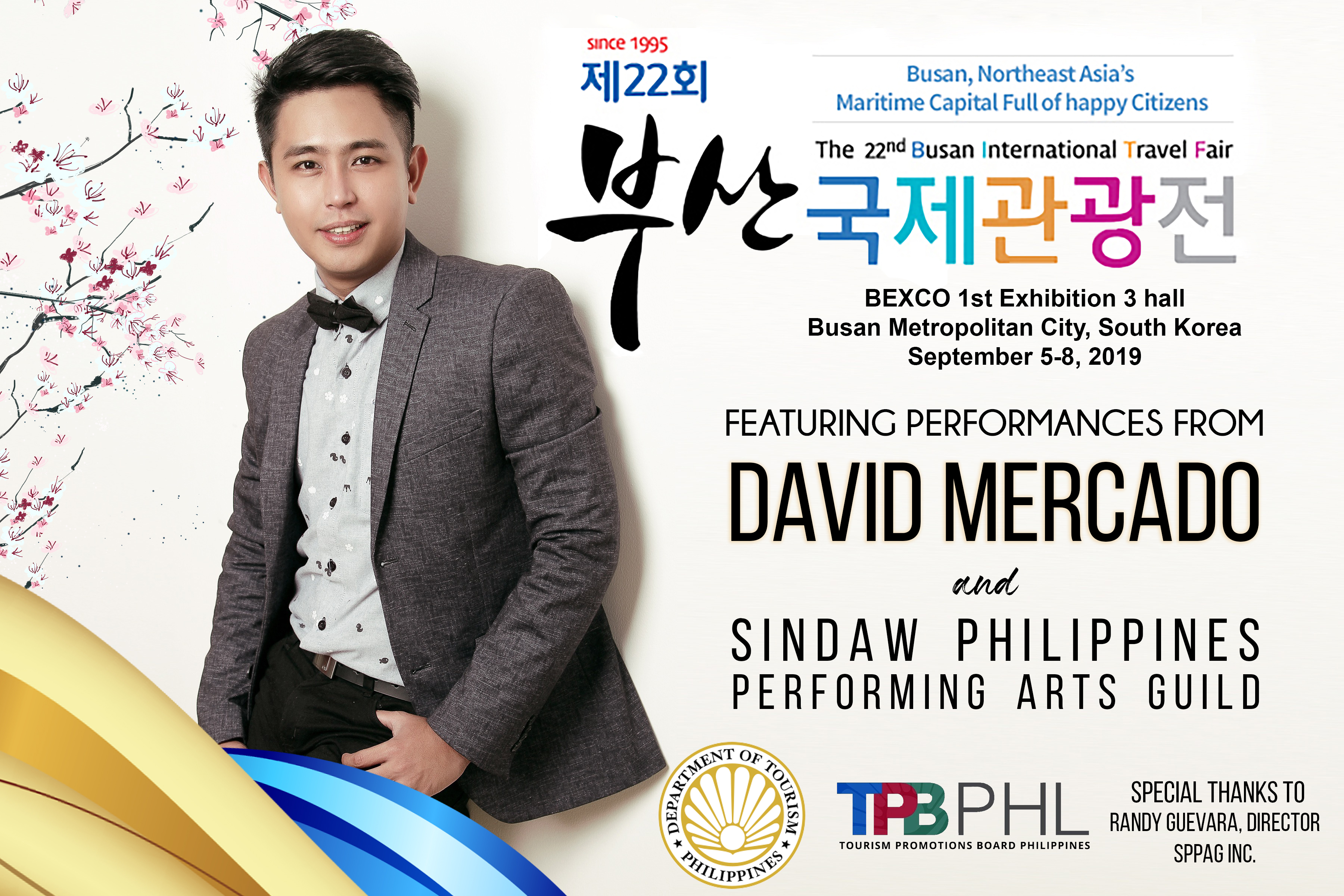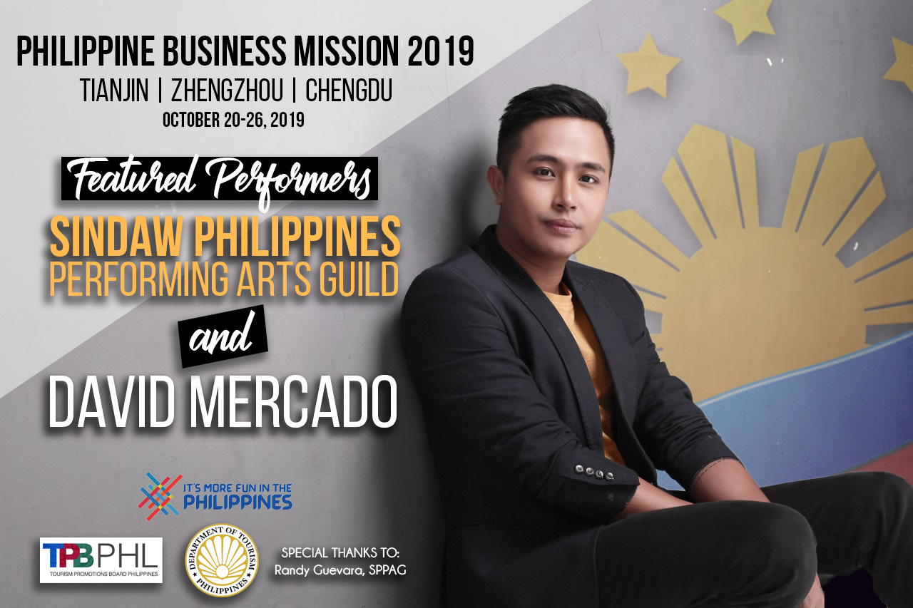After his successes in the World Championships of Performing Arts, David has been a trusted delegate by the Department of Tourism and the Tourism Promotions Board. He has been sent to host and perform in tourism events abroad, such as the Busan International Trade Fair held in Busan, Korea, the Philippine Business Mission to North China, which was a string of events held in Tianjin, Zhengzhou, and Chengdu), and the ASEAN Travel Forum 2020 held in Brunei.